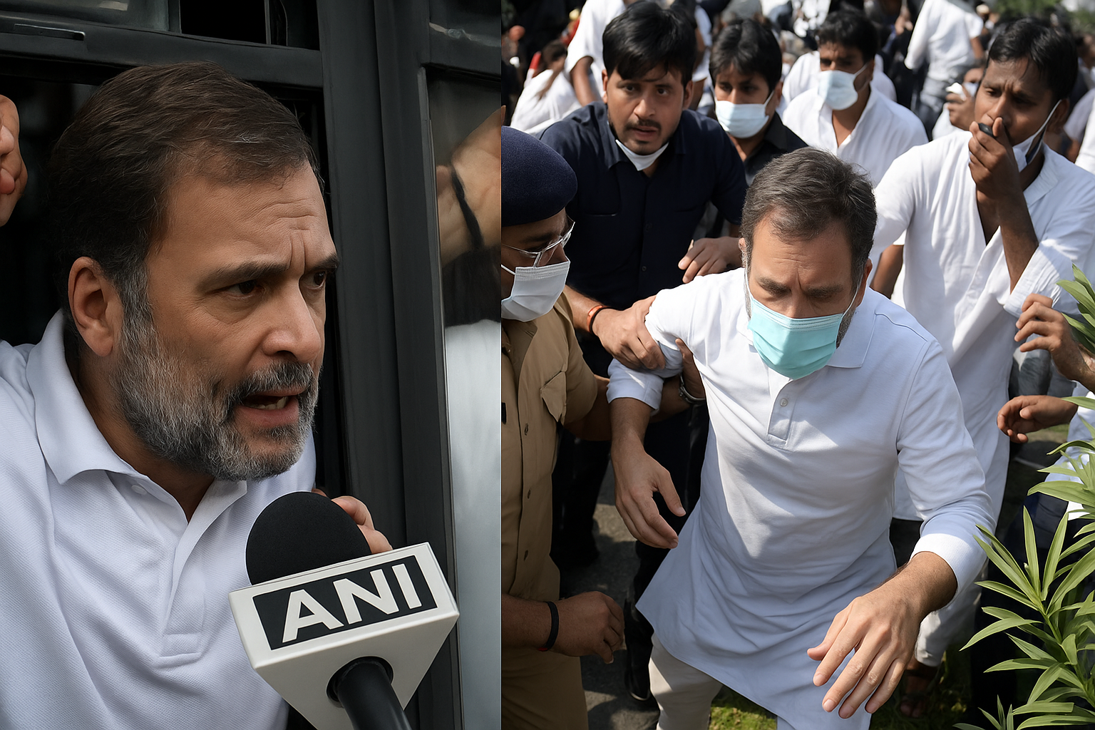 New Delhi: Political tensions reached a boiling point in the national capital on Monday as nearly 300 Opposition MPs, led by Congress leader Rahul Gandhi, took to the streets to protest against alleged “vote chori” (vote theft) and electoral malpractices. The protest march, aimed at reaching the Election Commission headquarters (Nirvachan Sadan), was blocked midway by the Delhi Police, triggering chaos, detentions, and dramatic scenes.