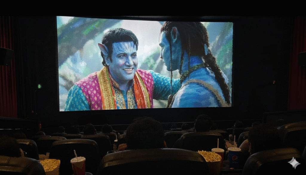 In these clips, Govinda is seen painted in the signature bioluminescent blue of the Na’vi but styled with colorful Indian jackets and accessories. One particular video features him giving a classic “batti bujha” earful to the Sully family, while others depict him dancing in the jungles of Pandora. The high quality of the visuals led many casual viewers to believe that James Cameron had finally paid homage to the Indian superstar.